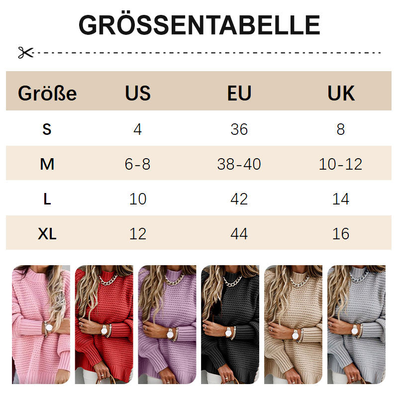 De subtiele zijsplitten en ronde hals geven de trui een moderne uitstraling, terwijl de beschikbare kleuren – van neutrale tinten tot zachte pastels en levendig rood – zorgen dat er altijd een variant is die bij jouw stijl past.
